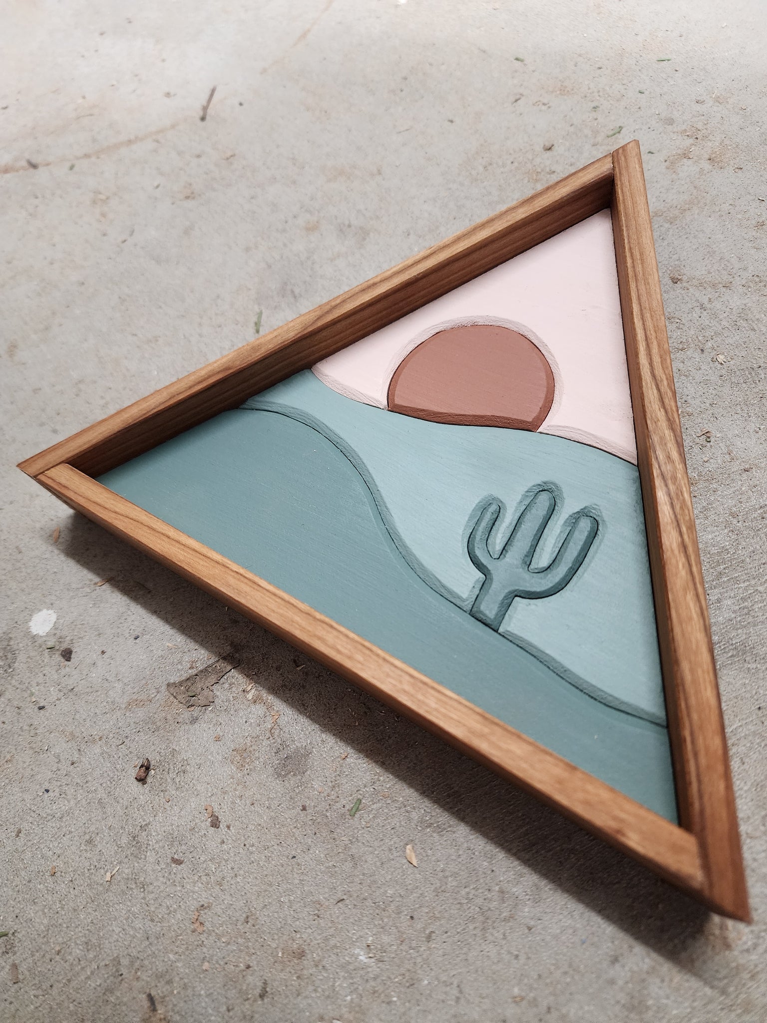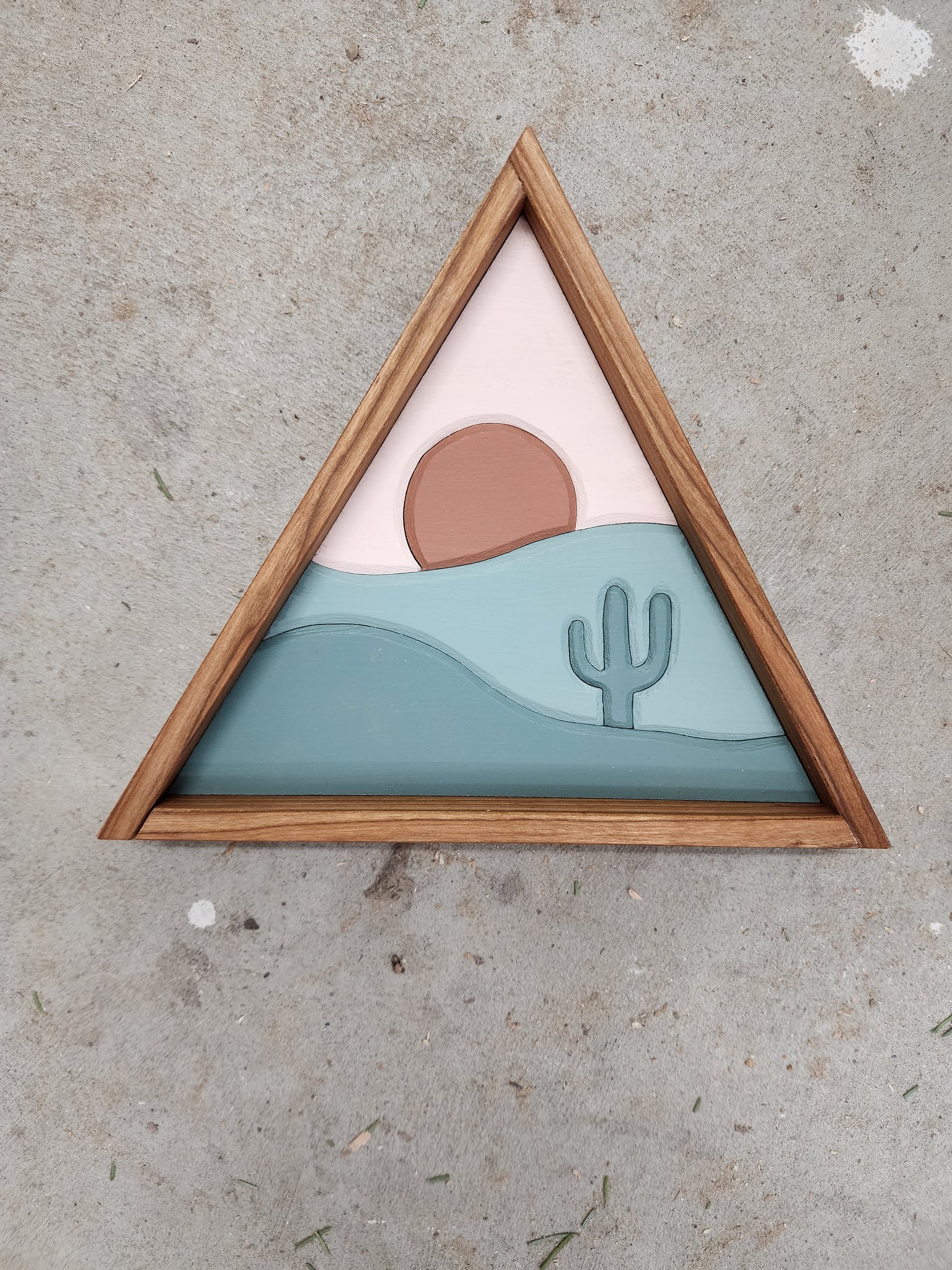 This piece includes a hanger on the back for hanging on the wall or it can sit on a shelf.