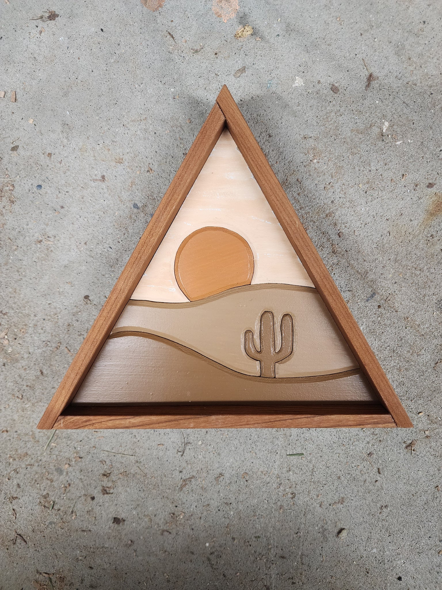 This piece includes a hanger on the back for hanging on the wall or it can sit on a shelf.